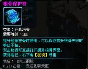 根骨保护符*1 | 提升经脉根骨时,失败等级不下降的道具 |
